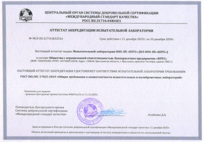 Наша лаборатория аккредитована и соответствует международному стандарту компетентности испытательных и калибровочных лабораторий.